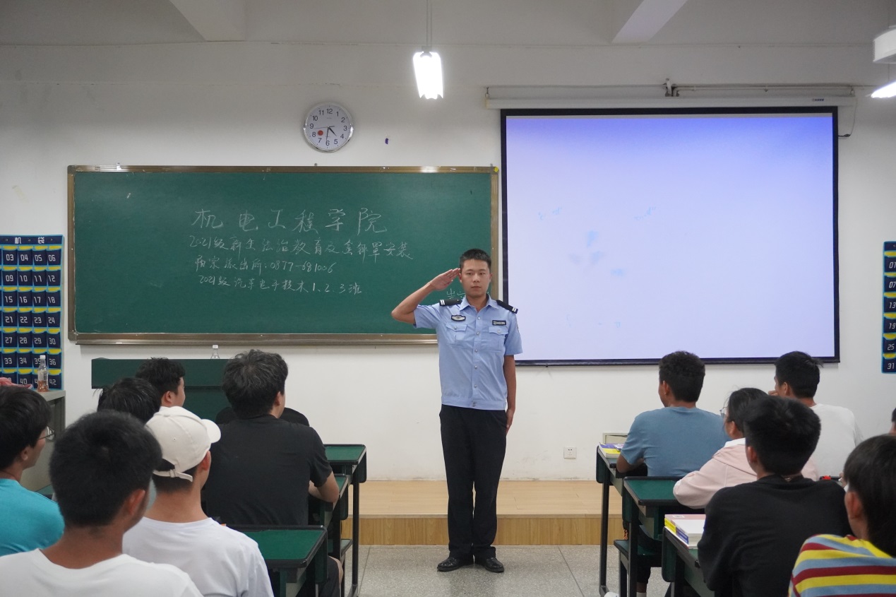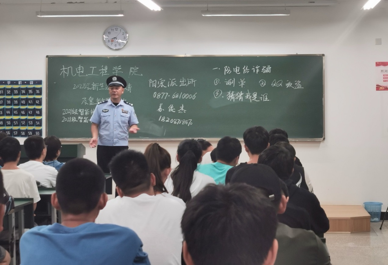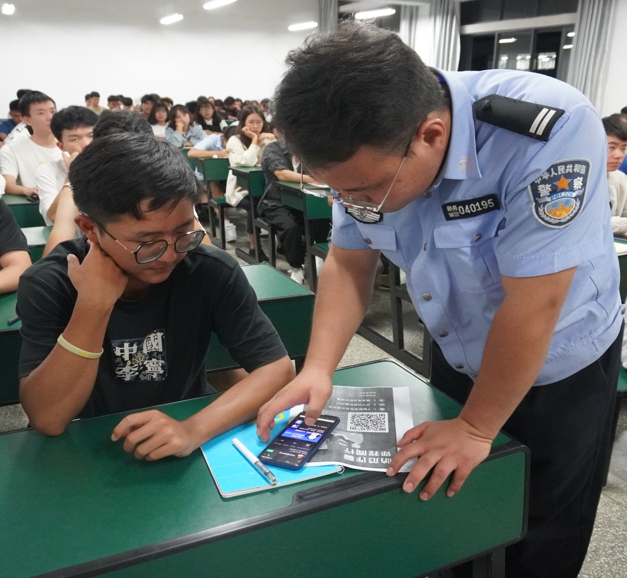 为做牢、做实校园安全工作,提高机电学子的安全防范意识,真正为员工办实事,银河集团官网在公司保卫处的带领下,于9月16日18:50在崇实楼、笃行楼教室针对2021级全体新生,开展了法制教育及“金钟罩”的安装指导。本次宣传教育讲座有幸邀请到阳宗派出所的10余名工作民警进行现场宣讲,银河集团官网党总支书记王春莲、副书记陈伟及全体辅导员老师共同组织并配合宣传。
