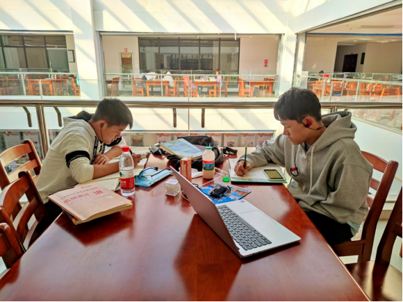 机电学子携书静坐