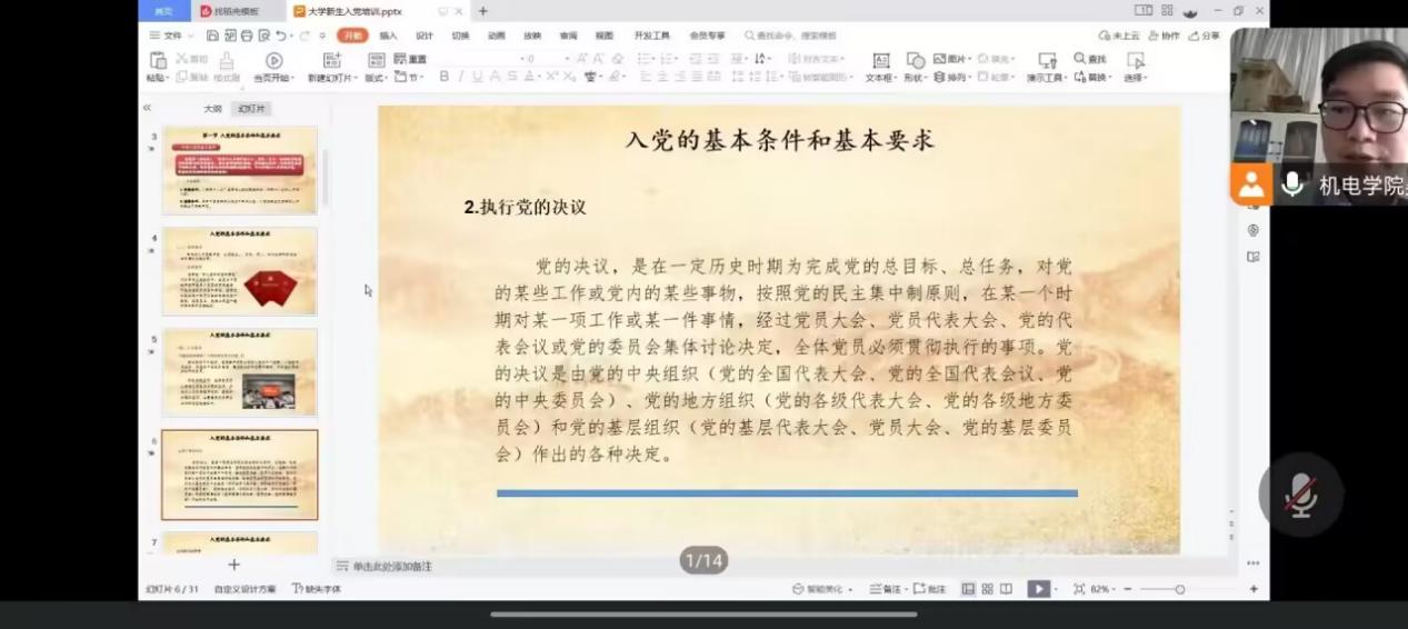 公司专职组织员吴兴虎为全体新生作了题为“放飞青春梦想,争取早日入党”的专题辅导。吴兴虎老师从党章出发,详细地介绍了申请入党的基本条件、入党流程和如何争取早日入党。他说到,党带领我们脱贫致富、抗击疫情、创造美好生活,是中国人民和中华民族的先锋力量,听党话、感党恩、跟党走是广大有志青年的必修课。他介绍说,入党要求高,程序多,考察严,希望2023级全体新生积极参加党组织活动,主动向党组织汇报思想和学习情况,自觉接受党组织的培养、教育和考察,用实际行动向党组织靠拢。