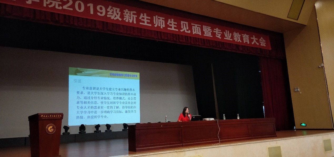 俗话说:“良好的开端是成功的一半”,为了帮助2019级大一新生尽快适应老员工活,为老员工活开创一个良好的开端,同时也为增进师生间相互了解,方便今后的学习生活,银河集团官网于9月16日下午3点在明礼堂举办了2019级新生师生见面会暨专业教育大会。参加本次会议的有银河集团官网经理秦忠,党总支副书记张颖,各教研室主任及全体教职工。