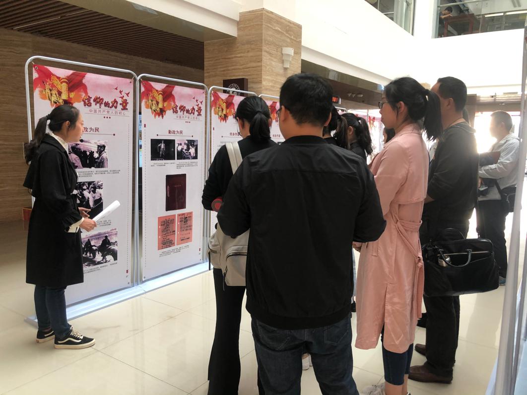 党总支副书记张颖老师声情并茂,举例子、摆事实为大家详细讲解了展览的五大主题,号召同志们要以老一辈无产阶级革命家为榜样,进一步坚定理想信念,强化责任担当,立足本职、爱岗敬业,以一流状态做好教学、教育工作,不忘初心,牢记使命,以昂扬的精神状态投入到工作与生活中。展览学习结束后,全体党员一齐参观了员工风采展,了解了各位优秀员工的事迹。