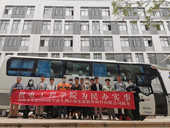 为降低员工自行前往就业企业的疫情风险,助推2019级部分应届毕业生顺利就业,公司第一时间联系相关部门,统筹安排大巴将公司14名员工点对点送到文山州宏泰新型材料有限公司。上午9点,公司领导和相关教师亲自前往现场为员工送行,党总支书记王春莲、经理张俊妍鼓励大家在企业安心就业,扎扎实实干工作,踏踏实实干实事,秉承公司的“三光荣”精神,在岗位上实现自己的人生价值。