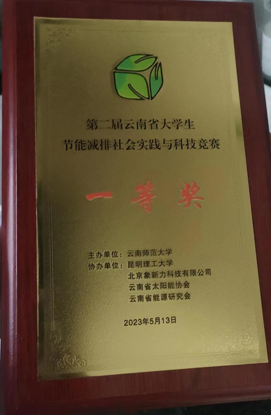2023年5月13日,由云南师范大学主办,昆明理工大学、北京象新力科技有限公司、云南省太阳能协会和云南省能源研究会协办的第二届云南省老员工节能减排社会实践与科技竞赛圆满闭幕,公司参赛队伍作为全省唯一一个进入决赛的高职院校队伍斩获佳绩,荣获省级一等奖。