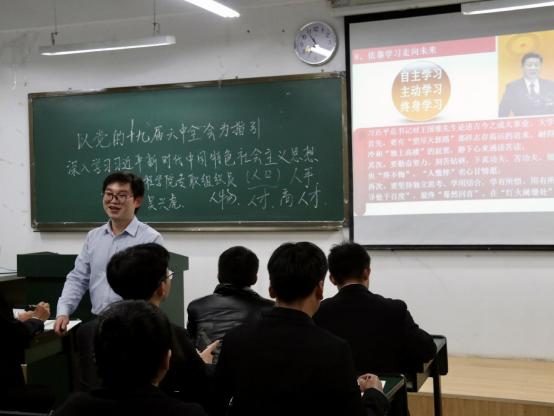 首先,吴兴虎老师以修业问道引出“明心见性,开悟觉醒”的观点,启发学员们深入思考。接下来,吴老师从“党的十九大确立习近平新时代中国特色社会主义思想为党的指导思想”、“习近平新时代中国特色社会主义思想实现了马克思主义中国化新的飞跃”、“习近平新时代中国特色社会主义思想的理论特色和历史贡献”、“习近平新时代中国特色社会主义思想的主要内容”、“深入学习贯彻习近平新时代中国特色社会主义思想”、“掌握马克思主义思想方法和工作方法”这六个方面深入浅出的讲解。他强调,为中国人民谋幸福、为中华民族谋复兴、为世界谋大同是习近平新时代中国特色社会主义思想的金钥匙。最后,他向同学们提出了四点建议:一是实事求是,讲真话、做真事会让自己面对困难时很从容,所有难题将会迎刃而解;二是发现自我、成就自我、超越自我,实现认知上的超越,不断升华自己的思想;三是坚持问题导向,针对性寻找方法解决问题;四是学会自主学习,多读书,让自己的老员工丰富多彩,实现人生价值。