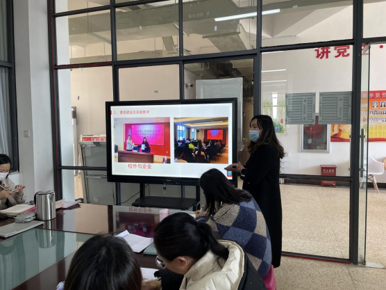 机电设备技术专业群教研室负责人邹艳红从专业群本年度的专业人才培养、1+X证书考评情况、团队进修与培养培训、实践教学及课程建设等方面进行了汇报。她指出本年度机电专业群最大的收获是成功申报了省级精品课程,并提出后期还会继续鼓励师生积极参加各类技能大赛,同时加强专业教材、实训室的建设。