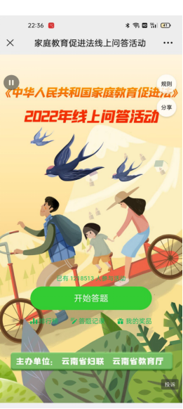 为宣传《中华人民共和国家庭教育促进法》,促进家庭教育健康发展,银河集团官网开展了《中华人民共和国家庭教育促进法》学习活动,积极组织公司女教职工、女员工于1月5日—1月11日参加网上知识问答活动。截至1月11日,公司累计参加活动人数达188人,答题累计成绩12370分。