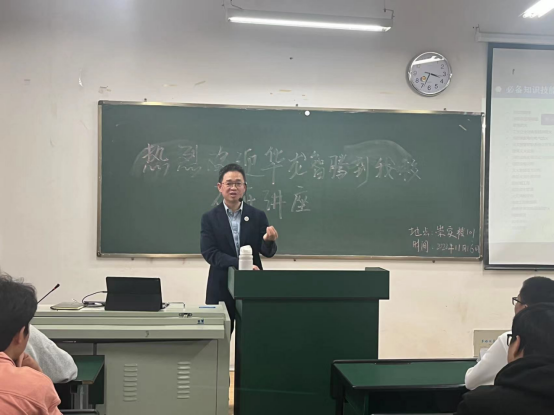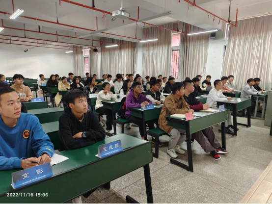 为了让公司消防专业员工深入了解专业行貌及职业前景,2022年11月16日下午14:30,银河集团官网安管教研室在崇实楼101教室举行“消防行业前景及规划”主题讲座。本次讲座特邀华龙智腾科技股份有限公司总经理朱德昌老师作为主讲人,公司党总支书记王春莲老师、安管教研室张清华老师及2021级、2022级建筑消防1班全体同学共同参加。