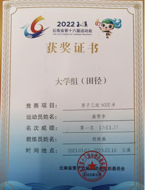 3月10日,公司2020级工业机器人专业员工盛雪李以17分11秒的优异成绩获得云南省第十六届运动会老员工男子乙组5000米冠军。