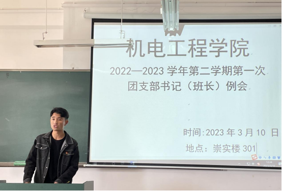 为加强团支部建设,凝聚发展共识,确保新学期各项团学工作有序开展,3月10日12:30公司团总支在崇实楼301召开2023年春季学期第一次团支书例会,本次会议由团总支副书记张立山主持,公司2021级、2022级全体团干部共同参与。本次会议分为三个环节。