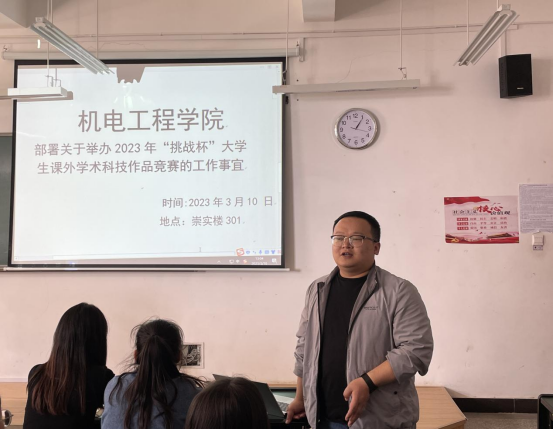 第三环节是对即将开展的“挑战杯”和“互联网+”创新创业大赛做动员工作。首先,主席团成员何大一同学对两项赛事的报名方式、作品内容等进行了介绍。随后,辅导员张洪梅老师进行了参赛动员,她希望全体团干部要在班级内主动宣传大赛、主动组队参加大赛,在大赛中提升自己、锻炼自己、成就自己。最后,公司团总支负责人陈立老师介绍了大赛的含金量和以往公司获得的优异成绩,并希望各团支部积极踊跃参加大赛,拿出好的作品参赛,再创佳绩。