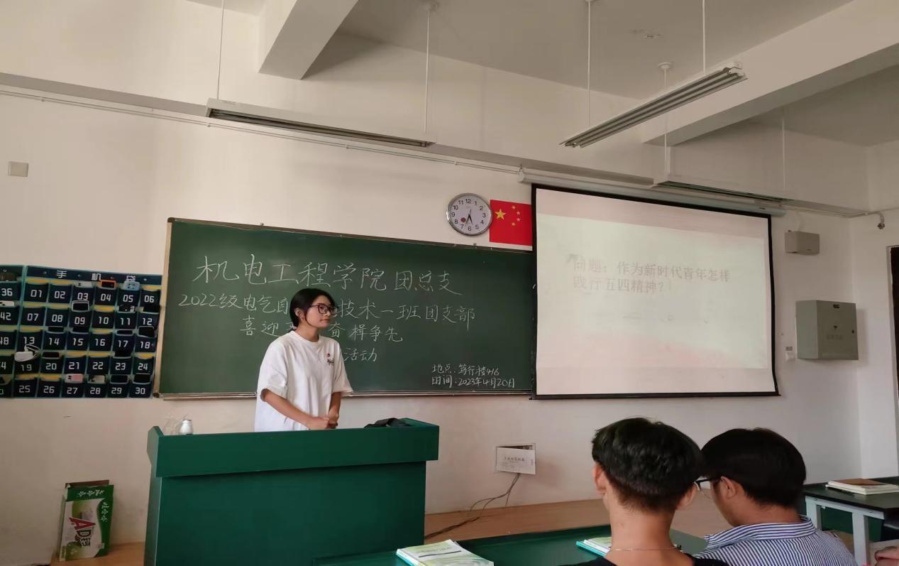 4月20日下午17:10,银河集团官网2022级电气自动化技术1班以“喜迎五四,奋楫争先”为主题,在笃行楼416举行了四月份的主题团日活动。本次活动由副班长段金娈主持,全班同学共同参与。