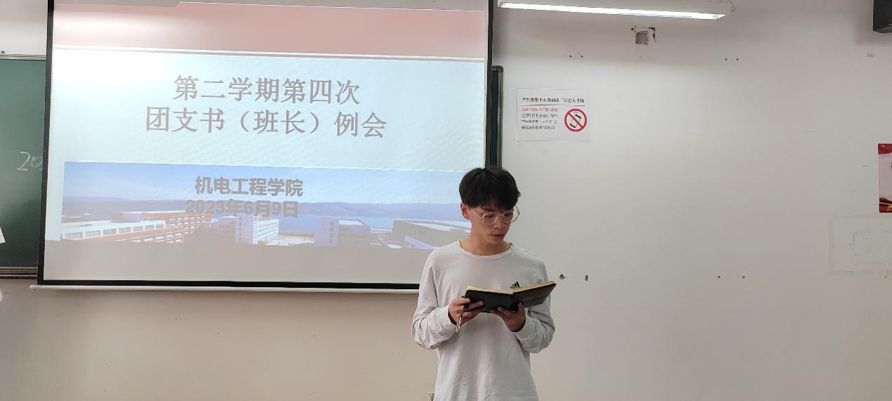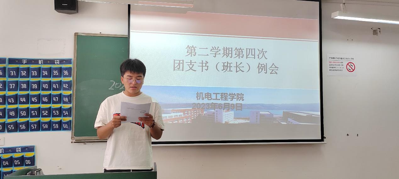 6月9日,银河集团官网团总支在崇实楼302召开了2023年春季学期第四次团支部书记(班长)例会。本次会议由团总支办公室志愿者蒋知言主持,辅导员马玲、全伟东老师、团总支副书记张立山和李玉花、员工会主席团成员段万琴和何大一、2021级、2022级各班团支部书记、团支部副书记共同参与。