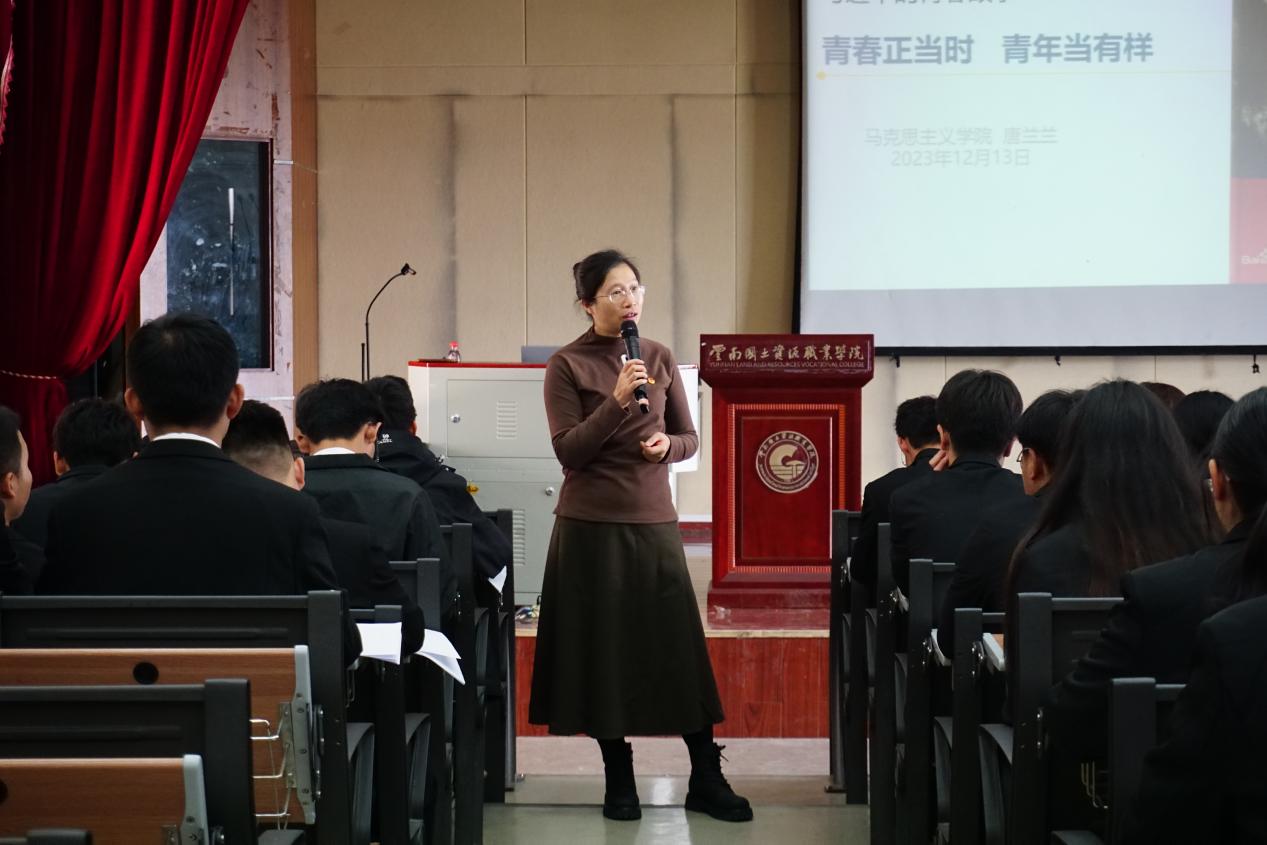 2023年12月13日下午,银河集团官网团总支“青马工程”领雁班第三期第六讲在光荣讲堂开讲啦!本次团课以《学习习近平总书记知青岁月:青春正当时 青年当有样》为主题,特别邀请到马克思主义公司唐兰兰老师进行授课,青马班第三期全体学员参加。本次团课共分为“知青岁月的历史背景、青年习近平的扎根精神、青年习近平的读书精神、青春正当时,青年当有样”四个模块。