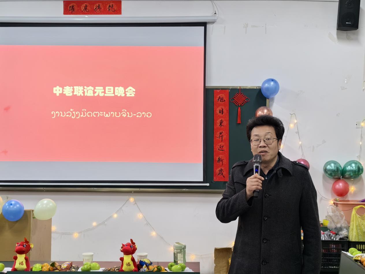 晚会伊始,副董事长齐武福发言致辞。他对老挝学员的到来表示热烈欢迎,并为在场师生送上了新年祝福,希望大家在新的一年,事事顺心,身体健康!