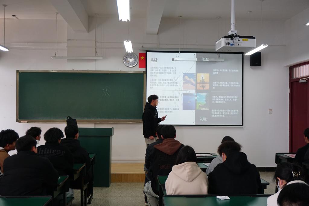 本次读书分享会共分为10间教室同步进行。会前,马玲老师介绍了本次活动的有关要求,徜徉于书海,如与智者的交流,与大师对话,呼吁大家应该为自己的精神更饱满、生活更富诗意而走进阅读。随后,各小组成员分别由组长带领,大家以PPT、音视频的形式生动形象地向组员分享自己喜欢的书籍。大家准备充分、各抒己见,从四大名著到中国当代小说经典《平凡的世界》;从柏拉图的《理想国》到余华的《活着》;从《云上小卖铺》到《三体》……同学们娓娓道来,与大家分享了自己喜爱的书籍,一个多小时的交流,大家遨游在书籍的海洋里,思绪在不同的世界穿梭徘徊。