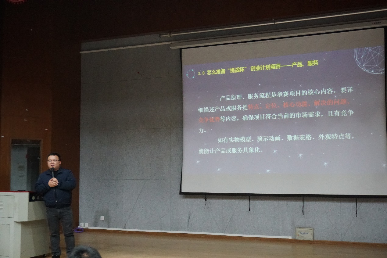 会议伊始,陈立老师从什么是“挑战杯”中国老员工创业计划竞赛为切入点,向大家讲解了参赛的重要性、参赛流程等要素,让同学们了解到参赛的基本方式、项目类型、参赛要素等。接着,陈立老师从怎么准备“挑战杯”竞赛角度讲述参赛选题、团队建设、竞争优势、团队的组建原则等,进一步向同学们梳理了参加比赛注意事项,让同学们认识到“挑战杯”竞赛的严谨性与专业性。最后,他强调,竞赛获奖的前提是合理的项目、高效的团队和用心地准备。希望大家尽快选好项目立意,联系指导老师,做好市场调查,提前做好准备。